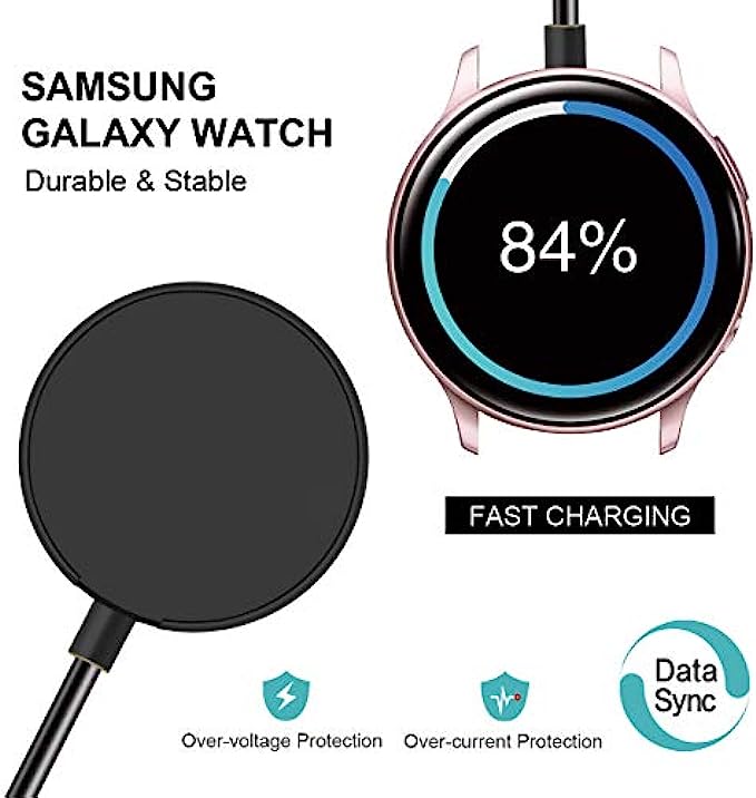 • COMPATIBILITY:This Galaxy watch charger is specially designed for Samsung Galaxy Watch 4 40mm 44mm/4 Classic 42mm 46mm,Galaxy Watch 3 41mm/45mm(Not for gear S3),Active 2 40mm 44mm,Active 40mm.Includes SM-R860/R870/880/890, SM-R840/SM-R850/SM-R8450,SM-R820/R830/R8350,SM-R500.