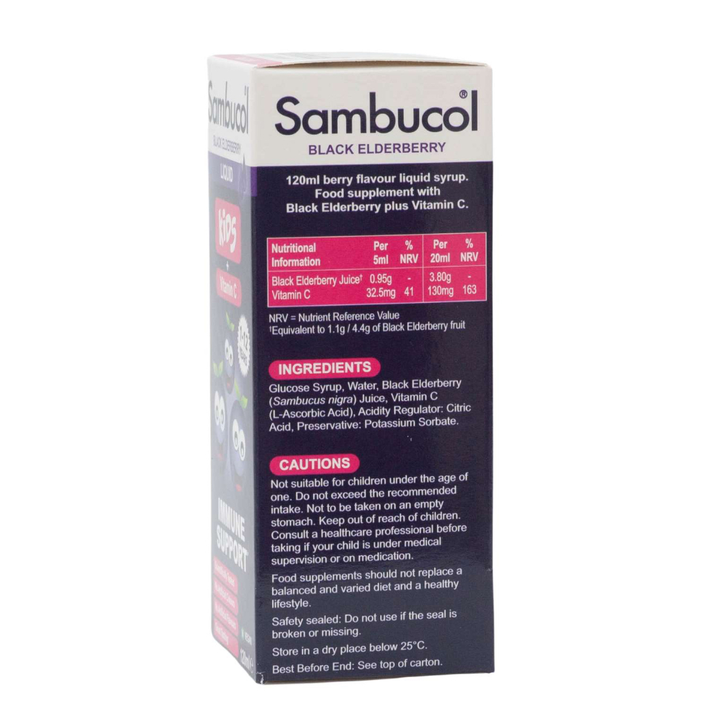 [3-pack] Exp 04/26 Sambucol Kids Formula Vitamin C, 120ml (1-12y, UK) /Immunped / Lactogg