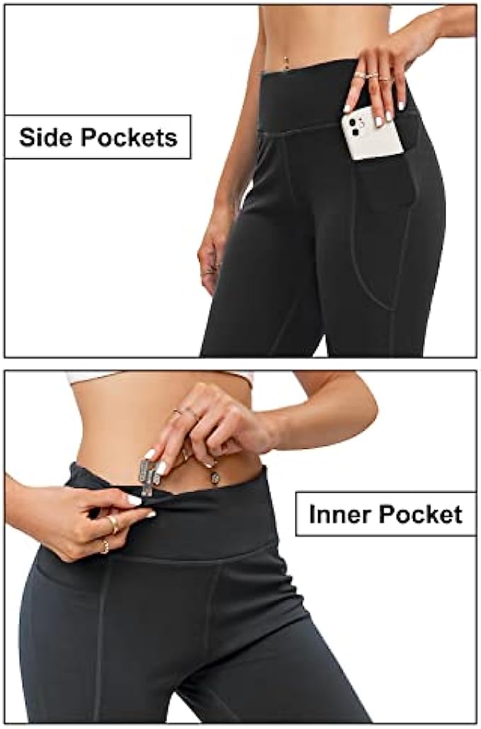 • FUNCTIONAL THREE POCKETS: The bootleg pants with 2 side pockets & 1 waistband pockets are ideal for keeping your cards, keys, etc. while you're on the yoga or working out at any places. 2 side deep pockets can fit a large smart phone can let you move, squat or do any poses in your exercises.