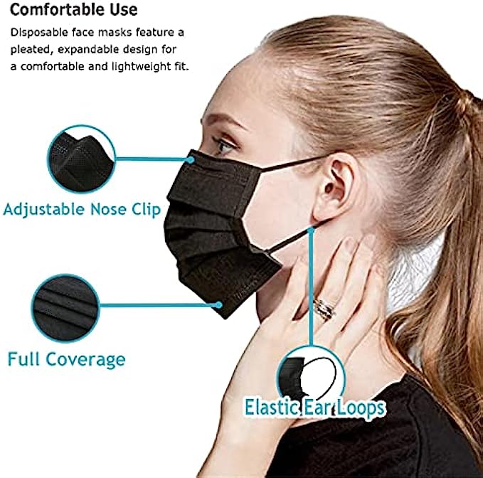 Black Masks - To make sure that you’re adequately protected, you need to choose the best disposable face mask. A good mask should fit snugly across your face covering your nose and mouth and stretched over your chin.