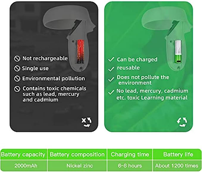 • ✿✿Environmental Friendly: Different from other Oculus Quest 2 charger, we are equipped with rechargeable batteries, environmentally friendly, reusable, will not produce waste batteries and do not pollute the environment