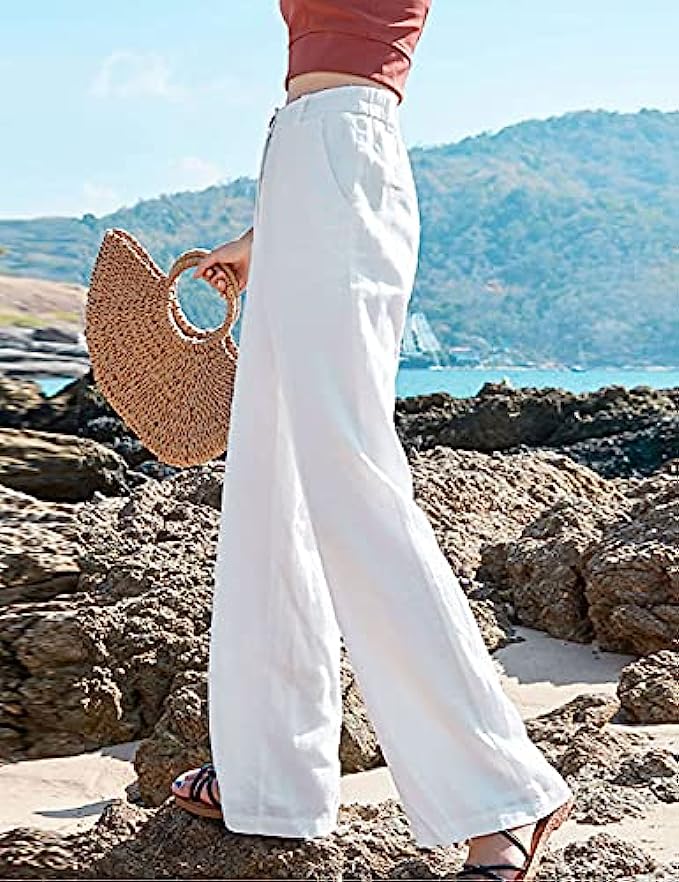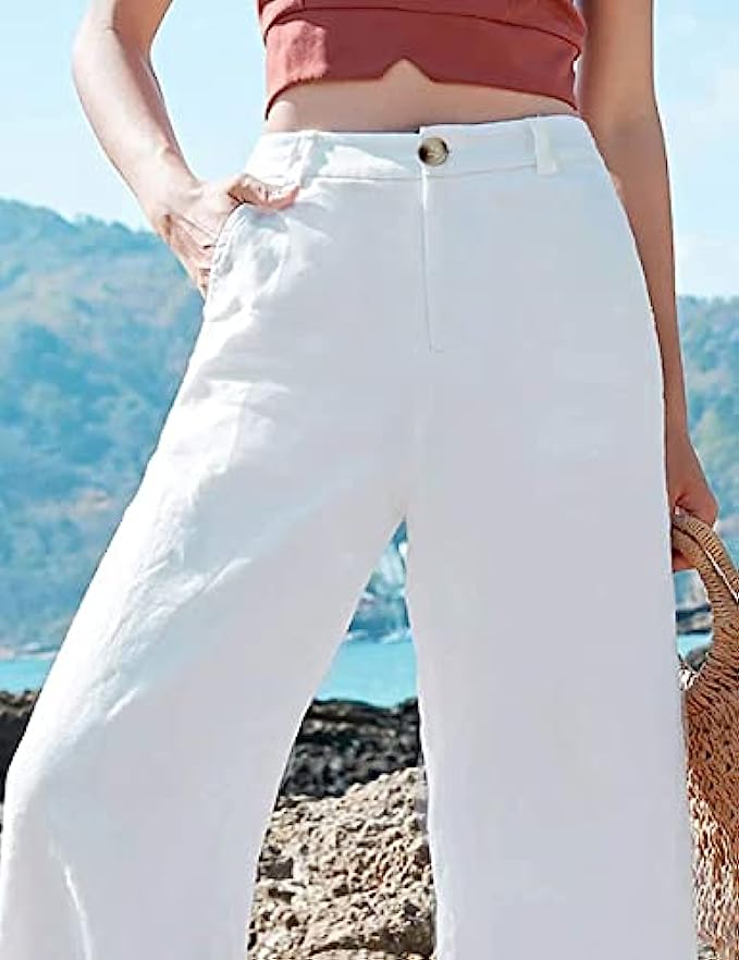 Hooever Womens Casual High Waisted Wide Leg Pants Button Up Straight Leg Trousers