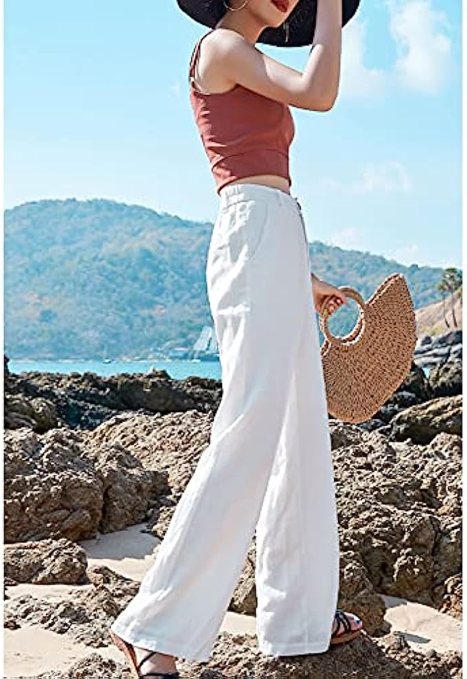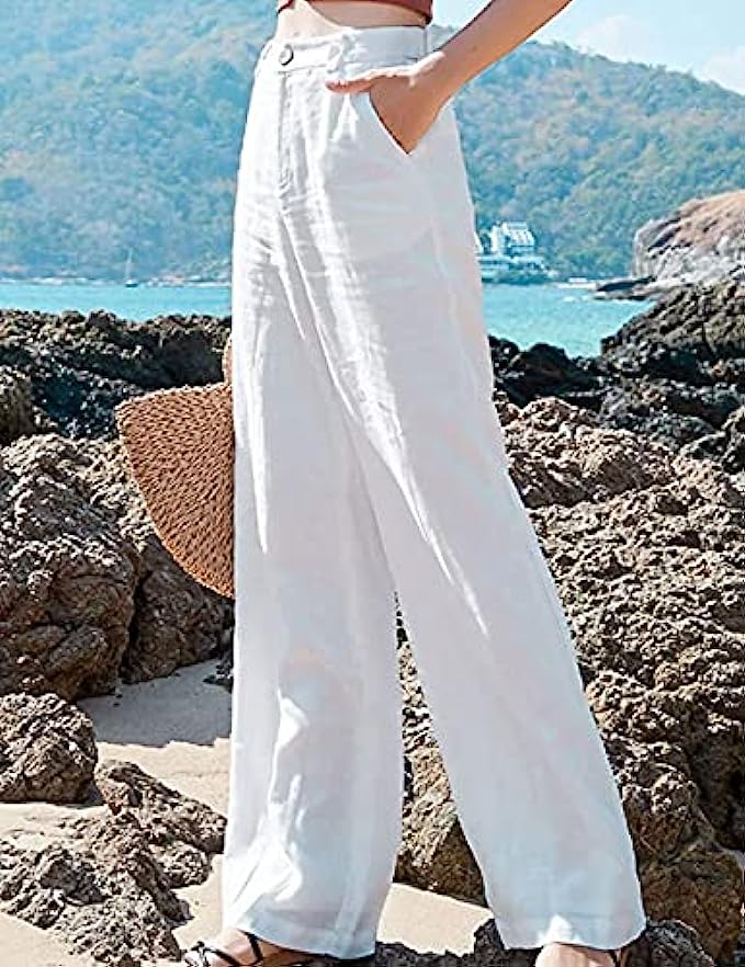 • Fashion comfy solid high waist long pants, beach button down pants