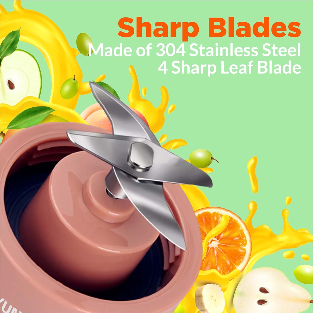 Hyundai Portable Fruit Blender Portable Extractor Blender Usb Rechargeable 4 Blades 400ml