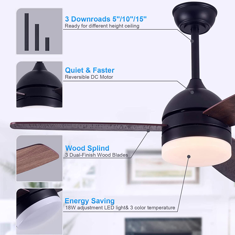 MOSS DC Motor Ceiling Fan Ceiling Fan With Light 3 Tone LED Light Kit And Ceiling Fan Remote
