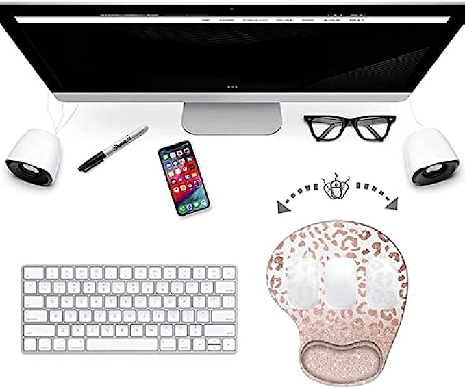 Mouse Pad with Wrist Support, Ergonomic Mousepad Non-Slip Base for Office Supplies Cute Desk Décor Accessories, Small Mouse Pads for Women Men Girls Rose Gold Leopard Cheetah