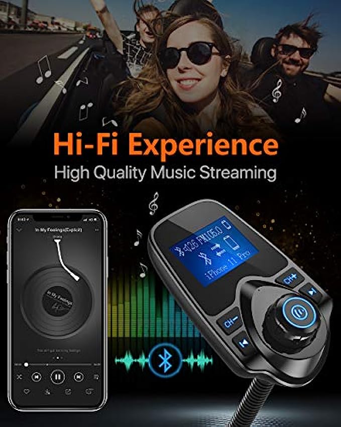 • Hands-free Calls: All in one button for hands-free calls: answer/reject/hand up/recall make you seamlessly switch between incoming calls and music. Enjoy complete voice-control and safer driving with this Bluetooth transmitter.