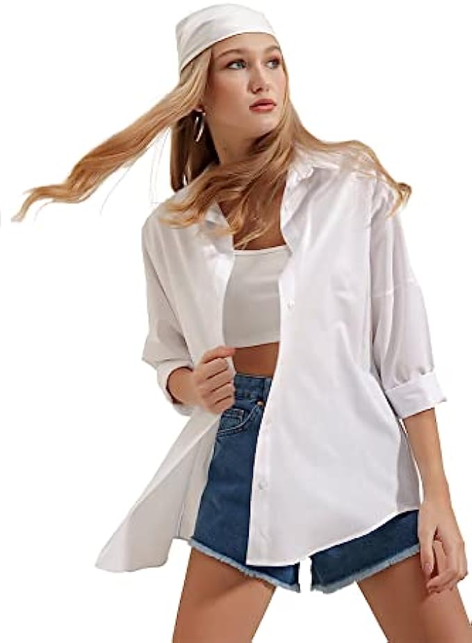 • We recommend you to buy your normal size. You will love these long sleeve stylish button down shirts. Loose fit design, oversized look, easy to roll up sleeves. Plus sizes are available