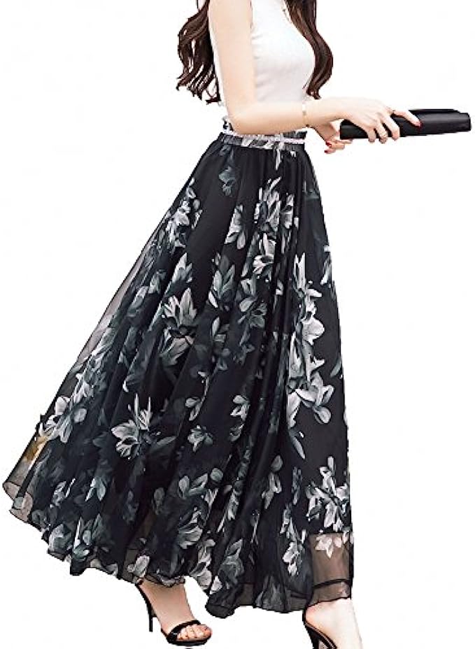 Afibi Women Full/Ankle Length Blending Maxi Chiffon Long Skirt Beach Skirt