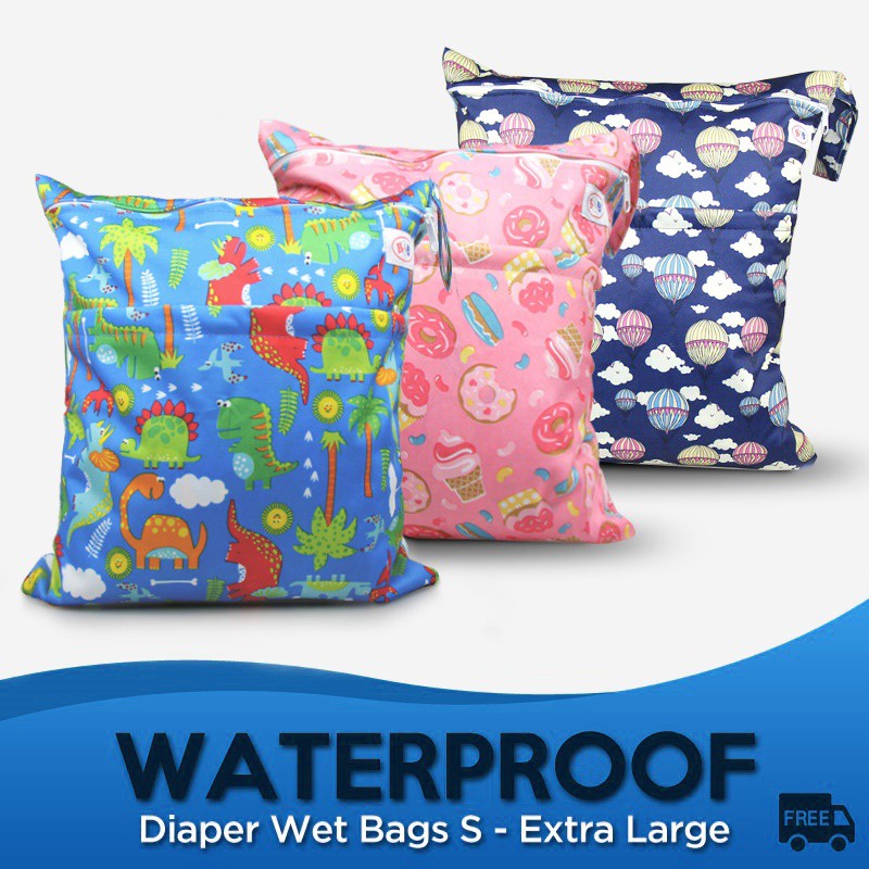 GU [SG stock] Waterproof Wet Bag Nappy Bags Double Zip Large Size Baby Diaper Storage for swimming clothes