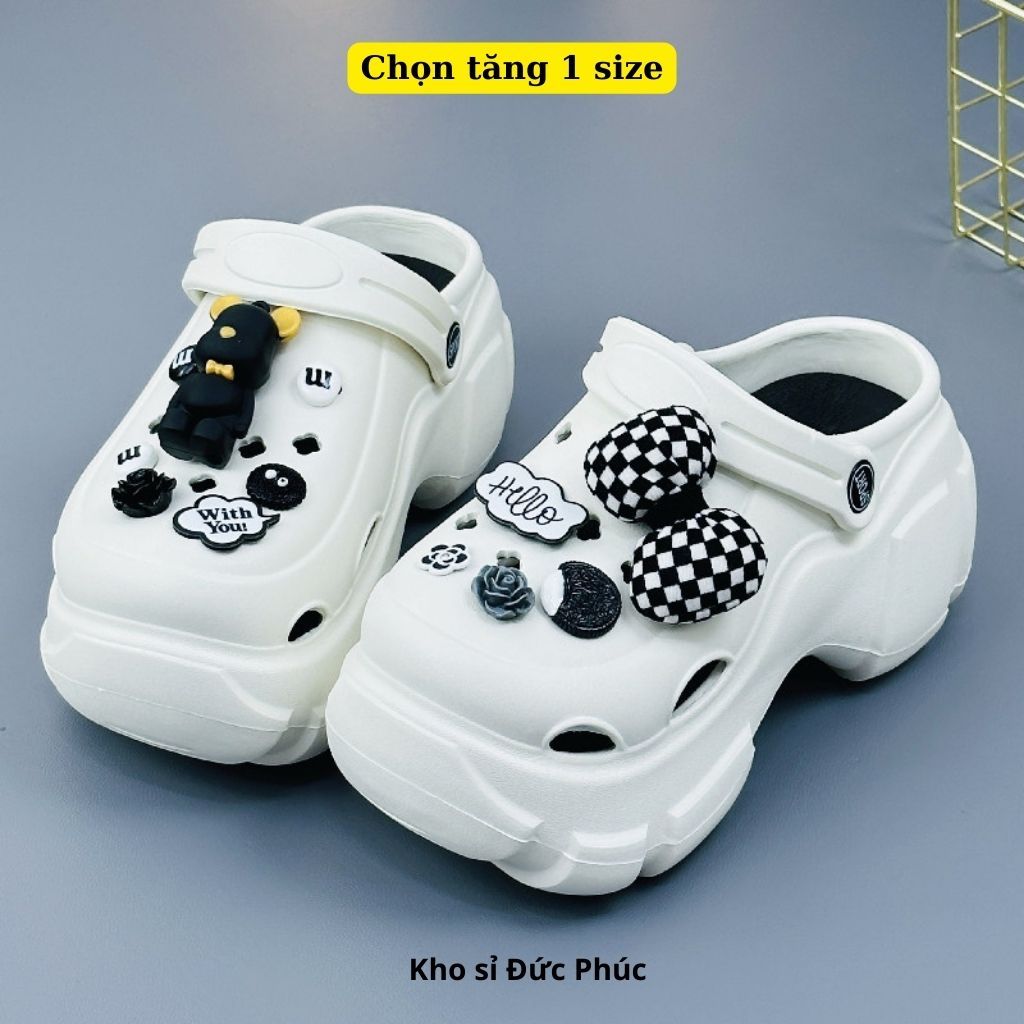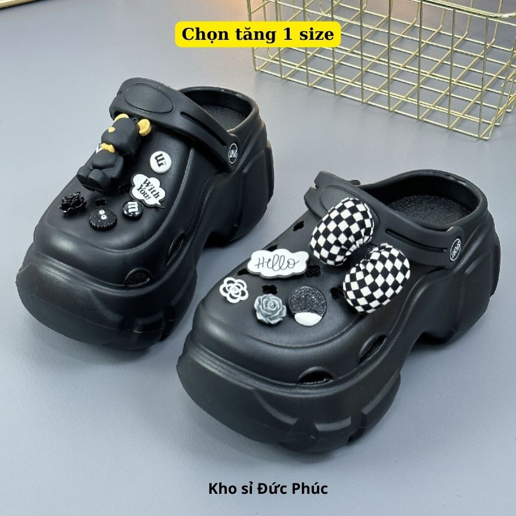 Crocs Height Increased Insoles Women Mules 6cm With Plaid Bear Pattern And Height Choosing 1 size Duc Phuc
