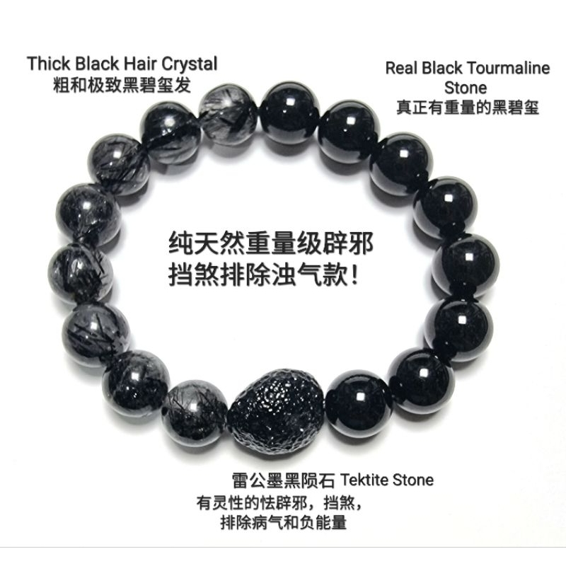 Eunegems Customize Natural Black Hair Crystal Black Tourmaline Tektite Bracelet 辟邪款手串
