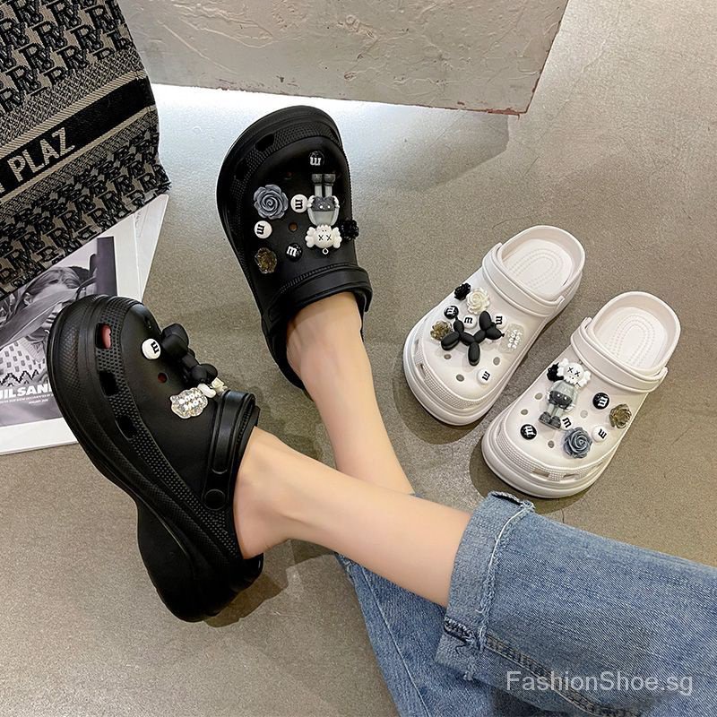 【Fast shipping】36-45 Crocs Jibbitz shoe for Men and Women's Fashion 4cm High Heel sandal Beach for Student Nurse
