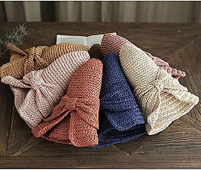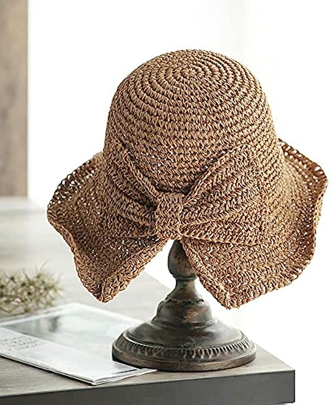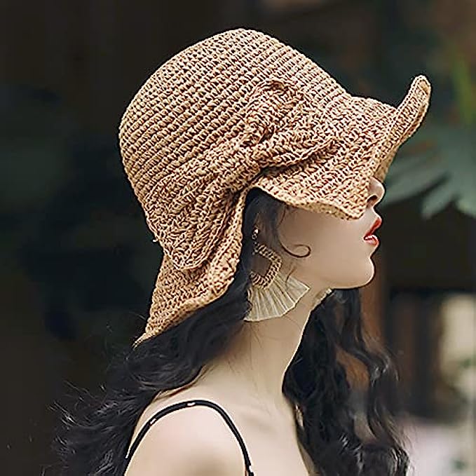 Foldable Wide Brim Floppy Straw Beach Sun Hat,Summer Cap with Bowknot for Women Girls,Strap Adjustable