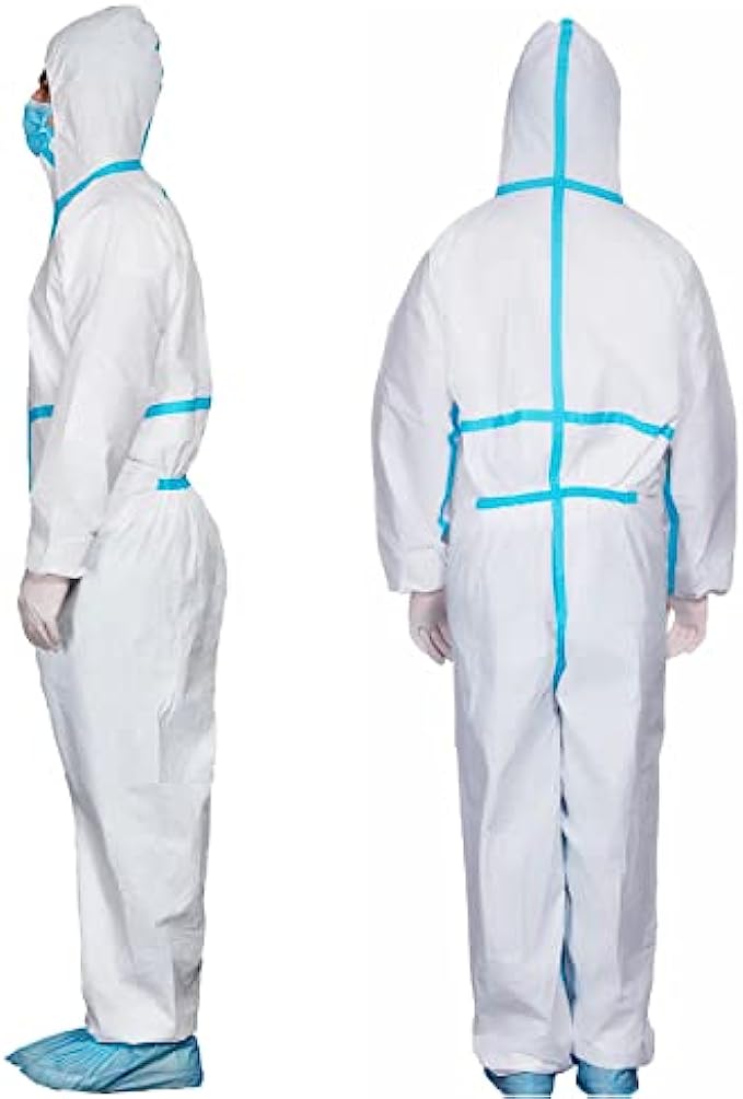 JMU Disposable Isolation Clothing with Hooded & Elastic Cuff, Disposable Coverall XL Size, Full Body Protective Suit 1 Pack