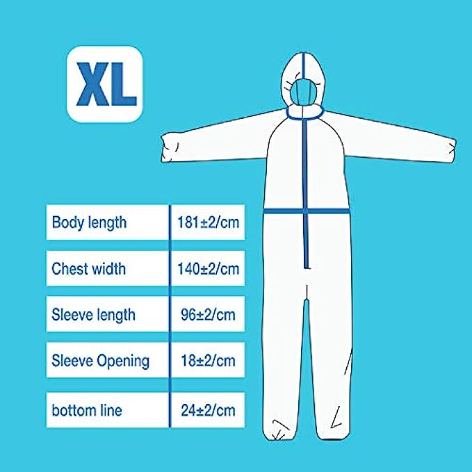 • Comfortable design:Each isolation suit has a front zipper opening and closing, making it easy to put on and take off . Comfortable loose version and elasticated waistband will make you freedom of movement