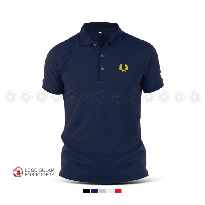 Polo T-Shirt Sulam Freds Perrys Design Logo Emas Gold Baju Lelaki Cotton Embroider Fashion Baju Lelaki Streetwear