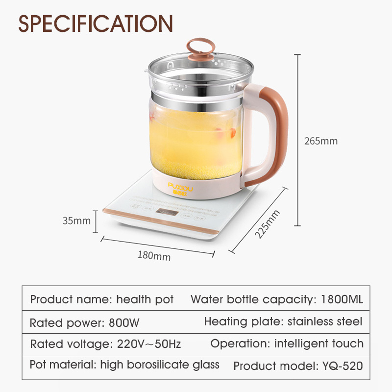 【READY STOCK】Electric Health pot Teapot 1.8L Multi-function Electric Kettle Thick Glass Kettle Thermos 3-pin Plug 養生壺 迷你