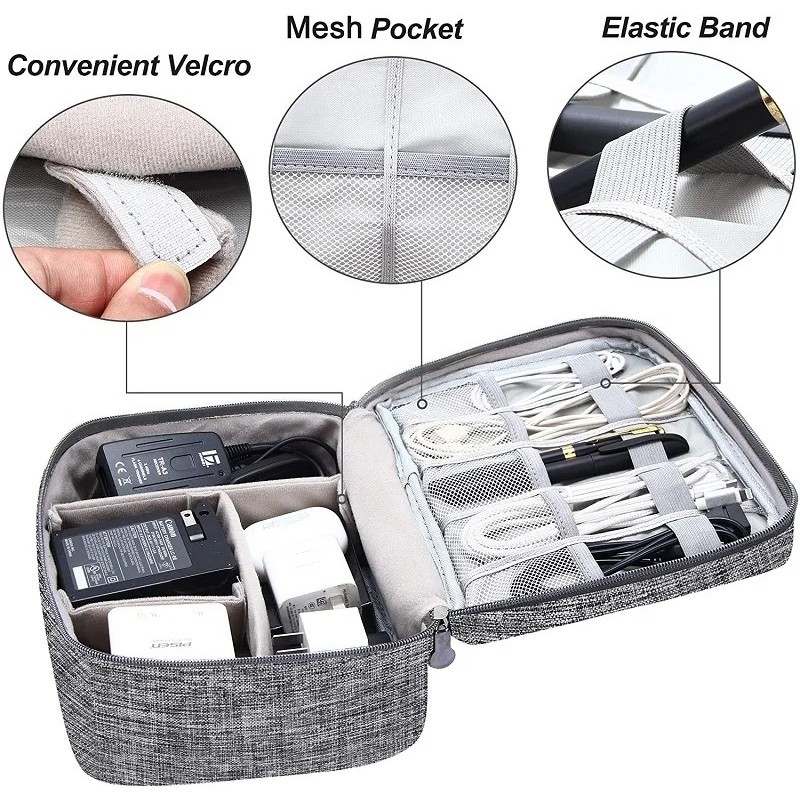 1pc Pink/Grey/Black/Navy Travel Portable Digital Product Storage Bag USB Data Cable Organizer Headset Charging Treasure Box Bag