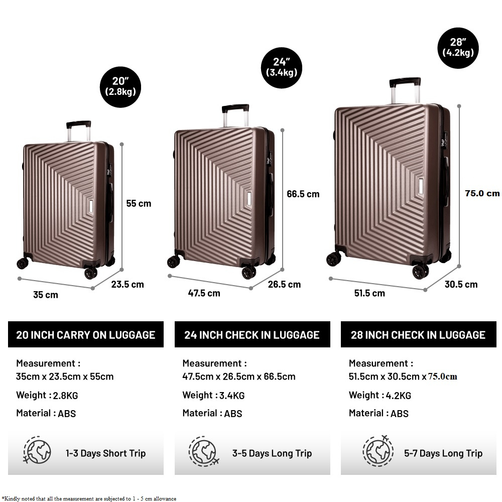 Easyhome.sg Classic Luggage / Hard shell Travel Bag Spinner ABS PC Case Trolley 20 inch 24 inch 28 inch