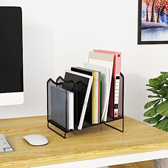 Simple Trending Mesh Desktop File Sorter Organizer, 5-Section Bookshelf for Desk Home Office, Black