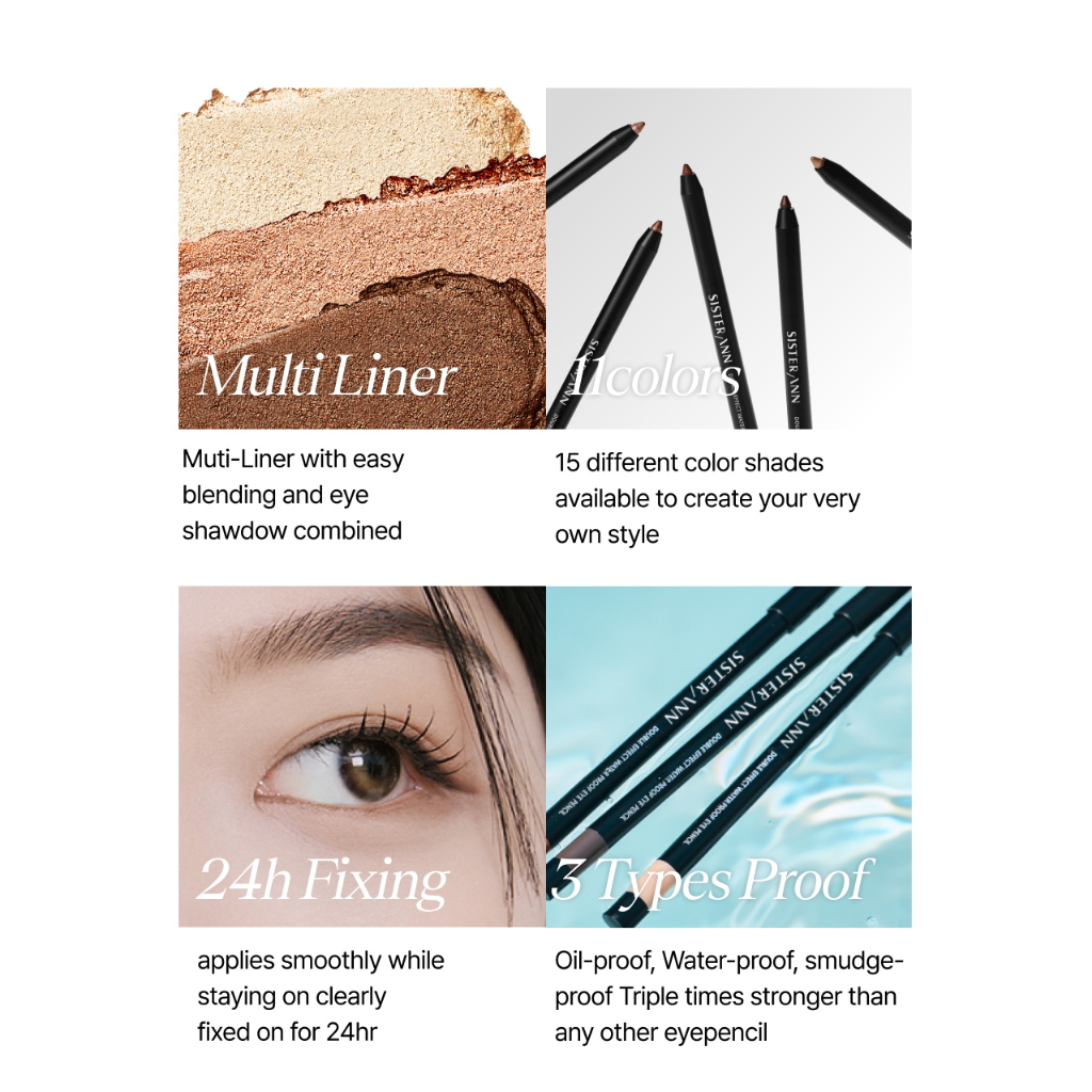 [SISTER ANN Official] Double Effect Waterproof Eye pencil 2 in 1 (15 Colors)