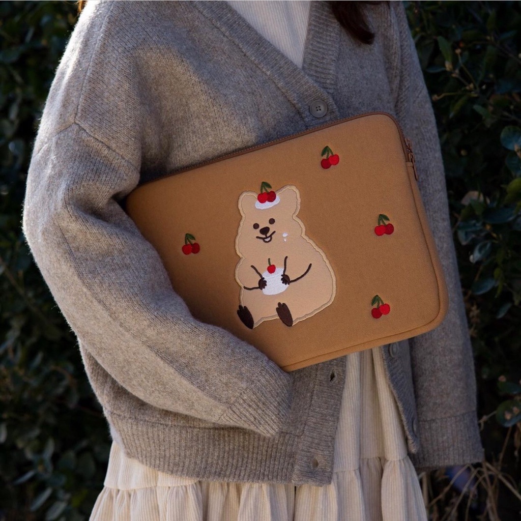 【THICKER】Cute Cartoon Embroidery Laptop Bag Tablet Bag 10/11/13/14/15/15.6 inch Tablet Pouch For Men Women