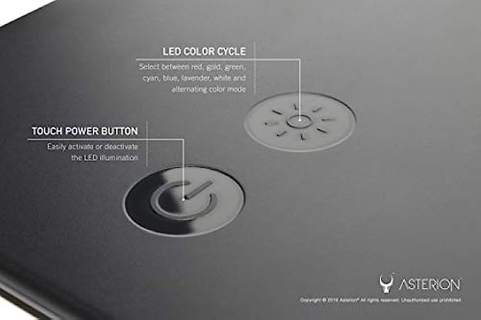 Changeable LED Color - With the front touch button you can change the light to red, gold, green, cyan, blue, indigo, lavender, white and alternating color mode.