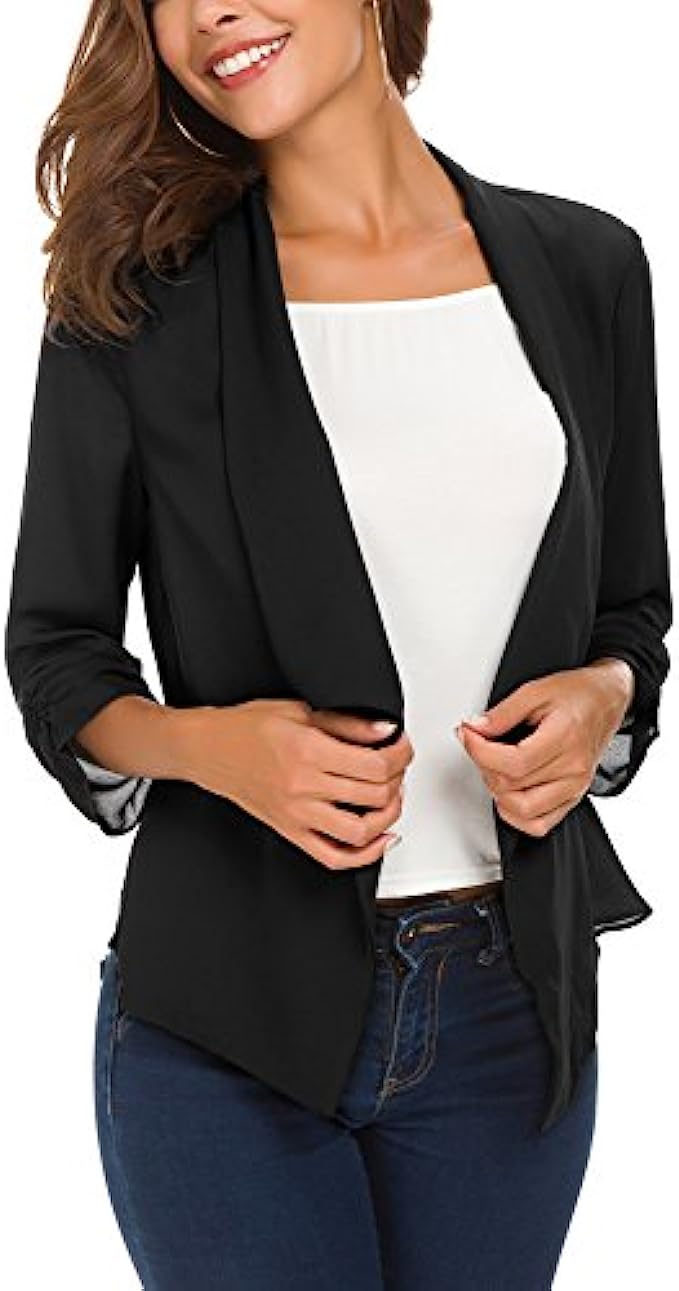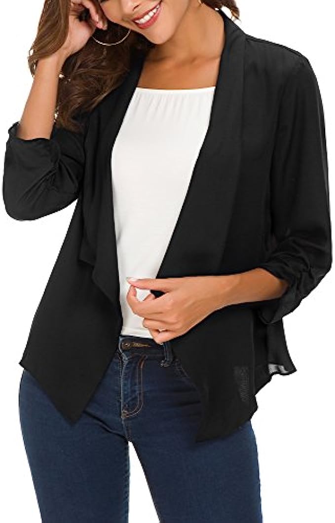 • Easy to match clothes,it's super easy to turn any outfit into a classy corporate wear when you have this lightweight chiffon blazer in your closet