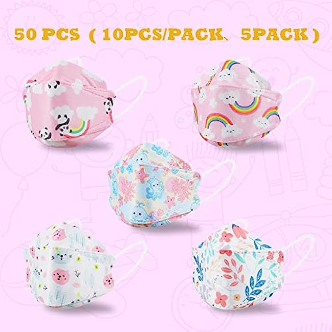• Versatility: 50 pieces per box, 10 pieces per pack, 5 packs in total. These kids cartoon KF94 masks are suitable for office, home, bicycle, grocery store, hospital office and all public places. It's the perfect mask to navigate crowded airports, bus stops, shopping malls and busy city streets.
